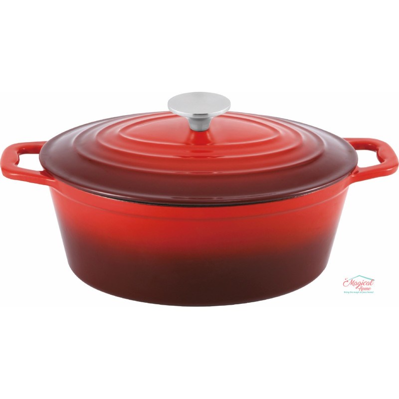 Cratiţă ovala cu capac din fonta emailat GR6428 Grunberg 24x22 cm , 4,0L Roşu