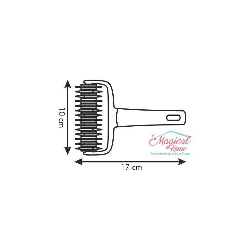 Rola este fabricată din material plastic rezistent şi este ustensila perfectă pentru a face cu uşurinţă modelul de fagure , încrucişat de pe tarte. Se poate folosi pe orice suprafaţă , inclusiv cele acoperite cu teflon , deoarece nu zgârie şi nu strică suprafeţele.